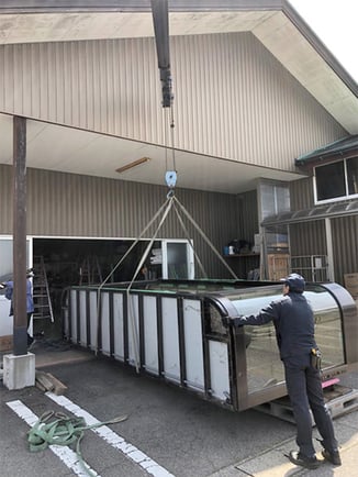 大型の鮮魚イケスも運送から搬入、据付までお任せください。