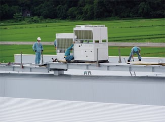 【高冷凍機の据付】 ビルの屋上での据付作業